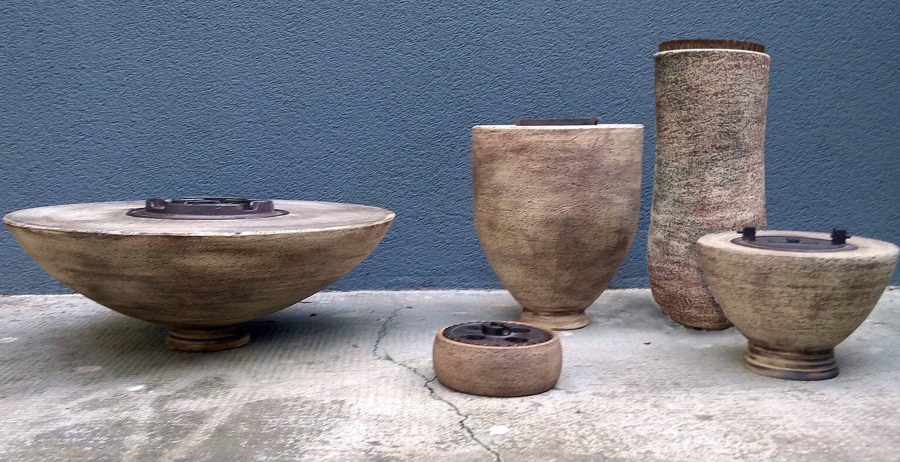 In meinen Arbeiten verbinde ich handgeformte Keramik mit gefundenen Materialien aus Natur und Industrie. Steine, Holzstücke oder Metallfragmente werden zu Griffen, Deckeln, Henkeln oder anderen Bestandteilen keramischer Objekte. Manche dieser Fundstücke durchlaufen gemeinsam mit der Keramik den Brennprozess und werden dauerhaft Teil des Objektes.